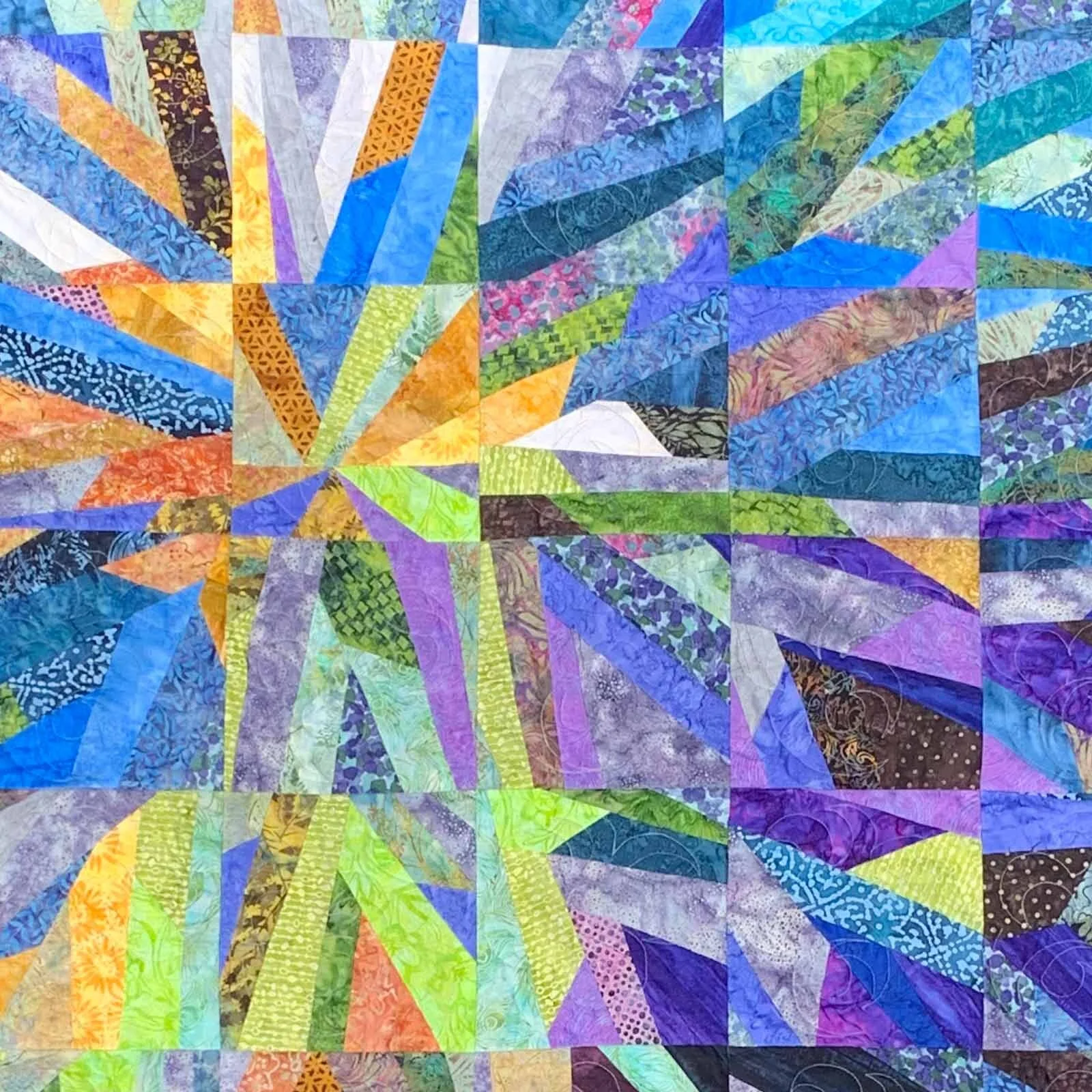72”x72” - pieced in 2022. “Convergence” pattern by Ricky Tims. Free motion quilted on Handi Quilter Moxie